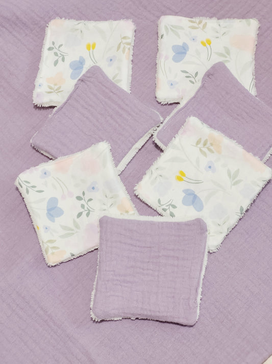 Lot de 7 lingettes et son panier - Lilas et fleurs aquarelle