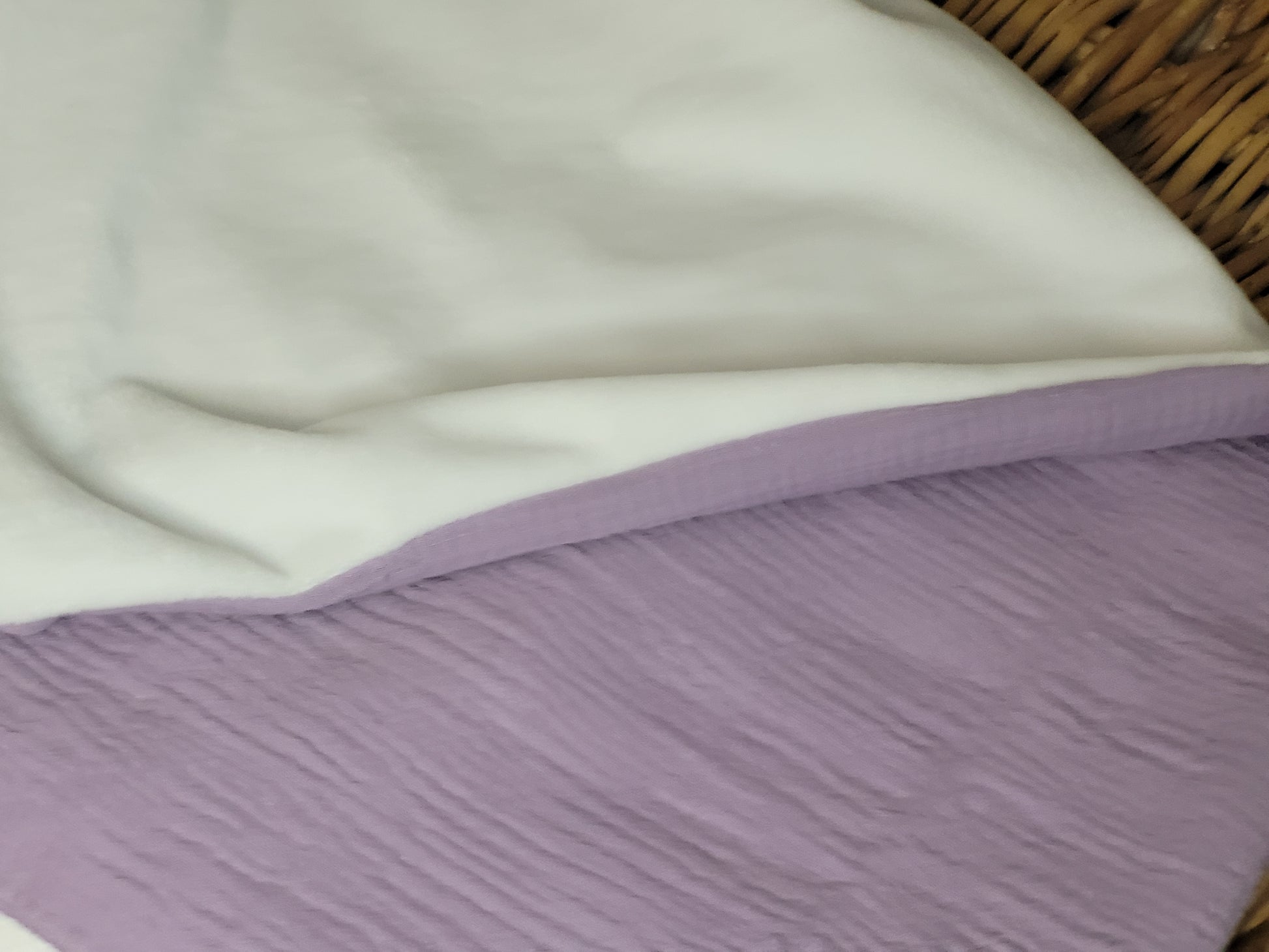 Couverture pour bébé en double gaze de coton d'un côté et minky de l'autre.