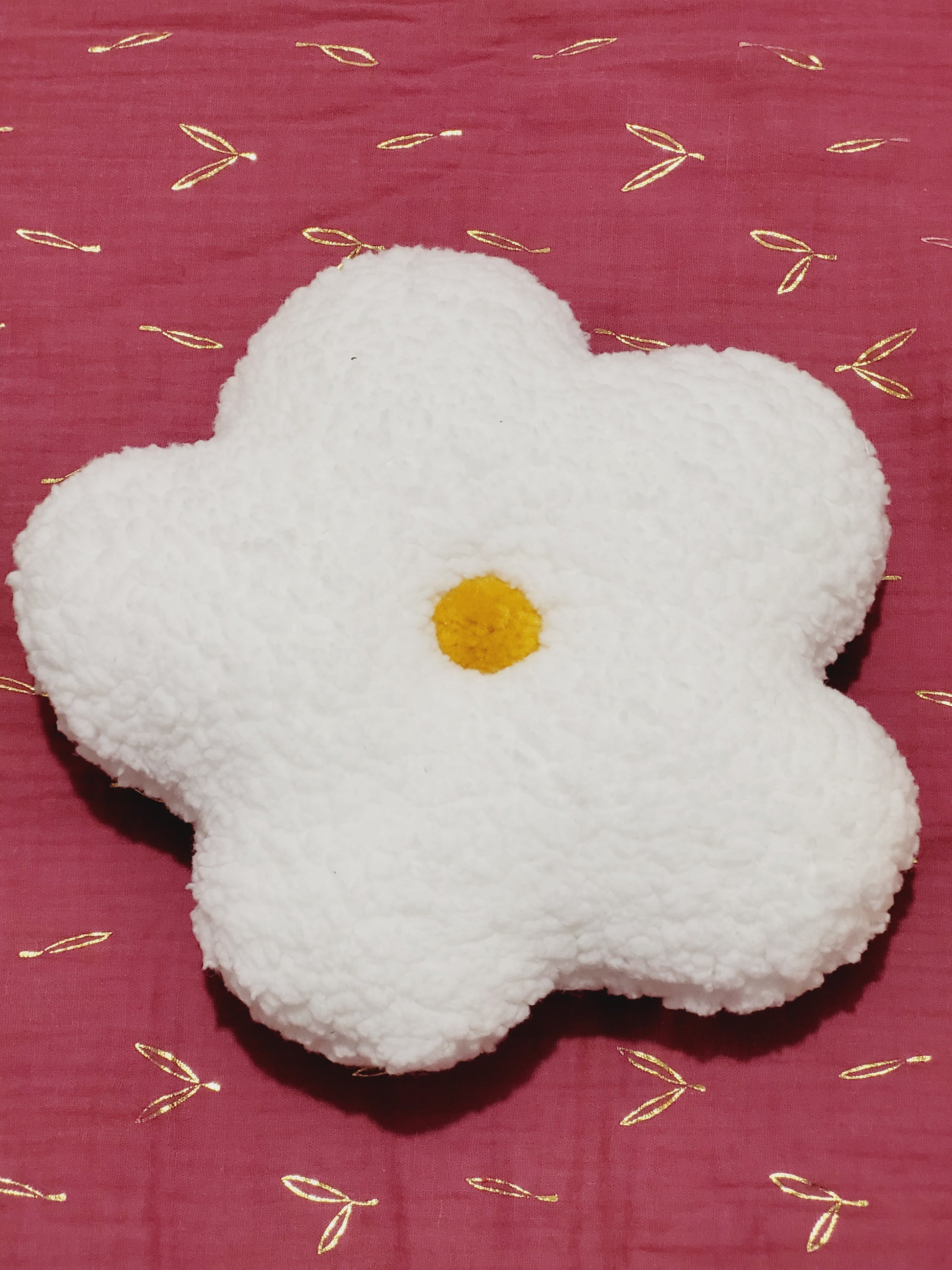 Pour une déco toute en douceur! Coussin marguerite tout doux en tissu sherpa, il vous fera craquer c'est sûr!