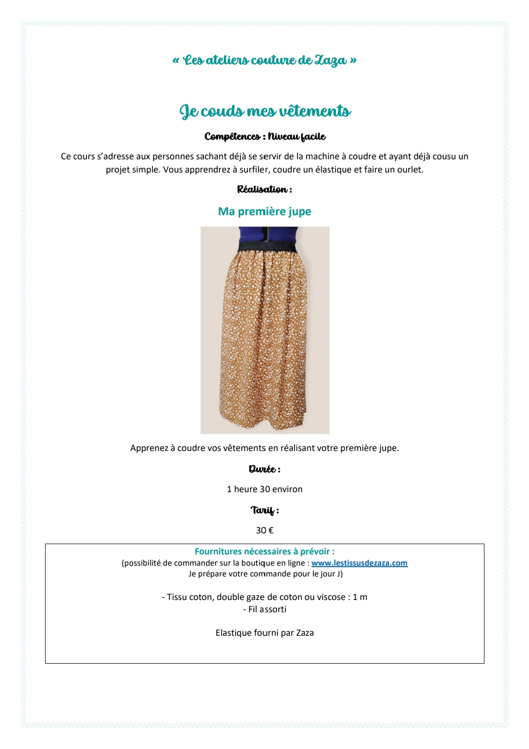 L'atelier de couture de Zaza - La jupe à élastique