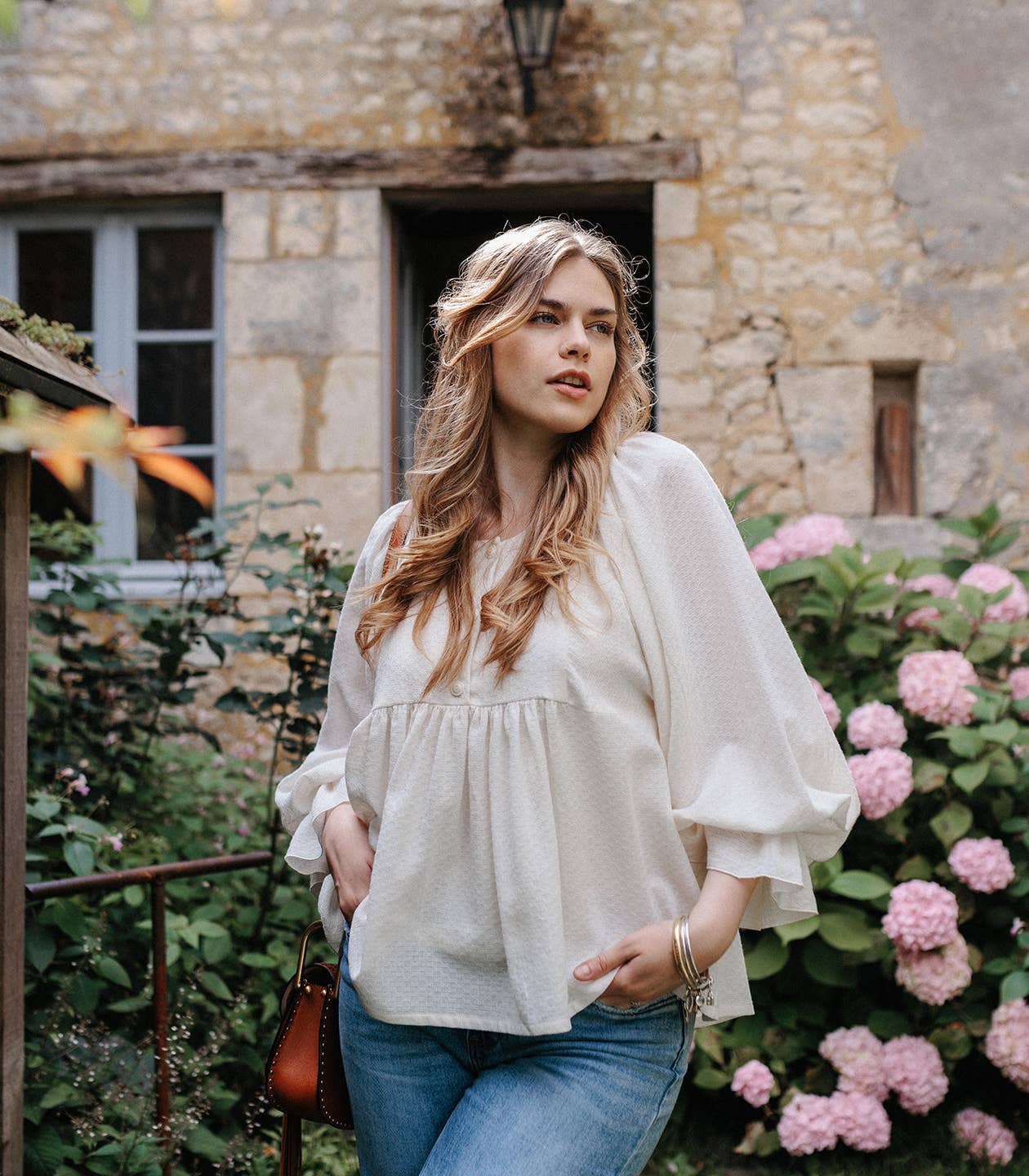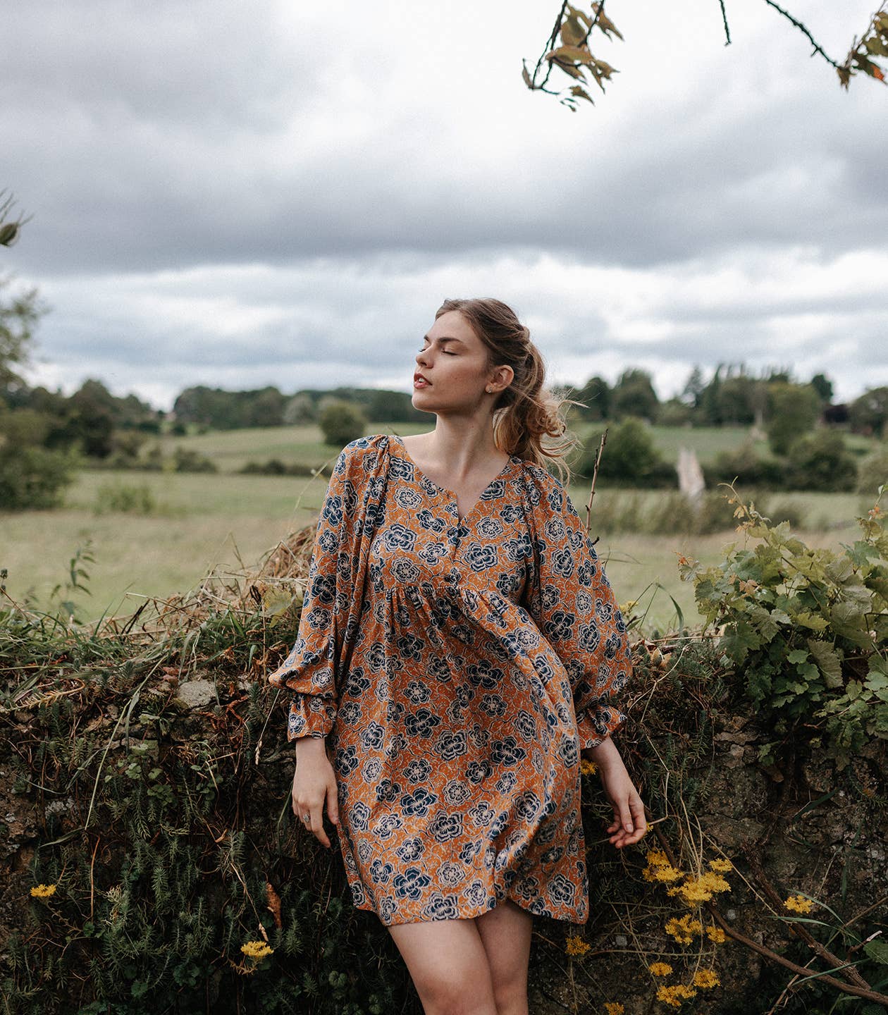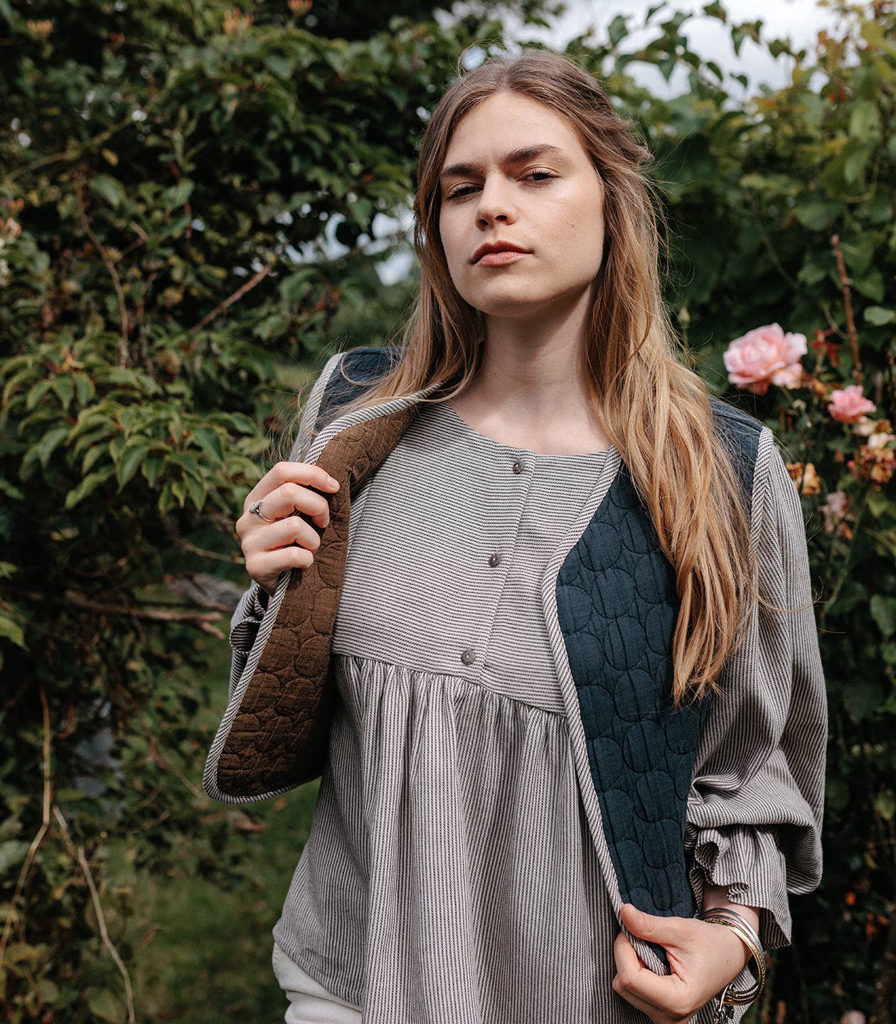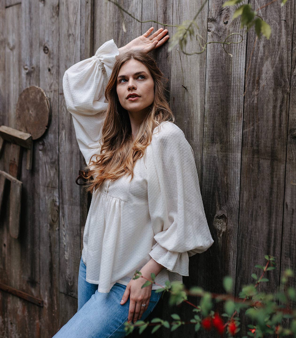 Crumpette est une blouse (ou une robe) avec des empiècements devant et dos "effet plastron". Une multitude de fronces partent des empiècements au milieu devant et dos ainsi qu’aux épaules. Elle est très ample avec une ligne sous poitrine légèrement arrondie devant. Les manches, directement attenantes aux empiècements sont gigantesques: longues, elles sont resserrés par un élastique dans une coulisse pour un effet volanté alors que courtes, elles sont comme un maxi volant tombant sur les épaules.