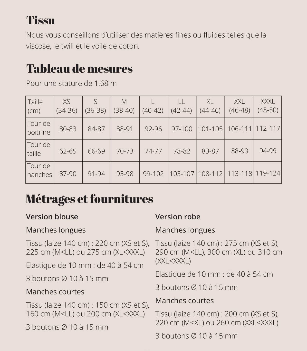 Tailles fournies du XS au XXXL (34/36 au 48/50) - Niveau intermédiaire