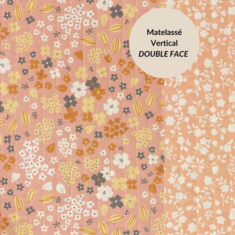 Le tissu matelassé coton double face est un tissu rembourré de ouate maintenue par un surpiquage verticale entre deux couches de tissus. Nous vous conseillons un lavage à 30 degrés et un séchage à l'air libre.